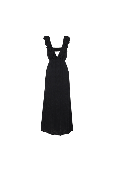 Sunnie Dress Black S Maxi pintuck cotton satin dress