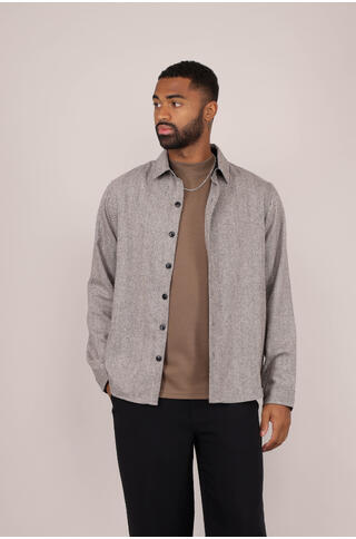 Odion Shirt Dark Brown M Herringbone wool shirt