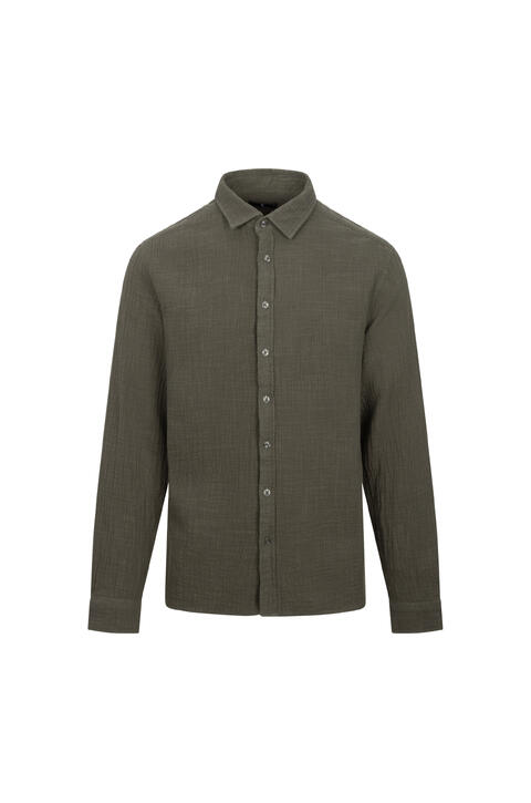 Kristian LS Shirt Olive L Cotton gauze LS shirt