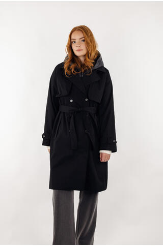 Eira Coat black S Technical trench with removable hood